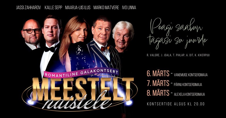 Come celebrate Women's Day at the gala concerts in Tartu, Pärnu and Tallinn! Beautiful Estonian music will be performed by Maarja-Liis Ilus, Ivo Linna, Marko Matvere, Kalle Sepp and Jassi Zahharov.