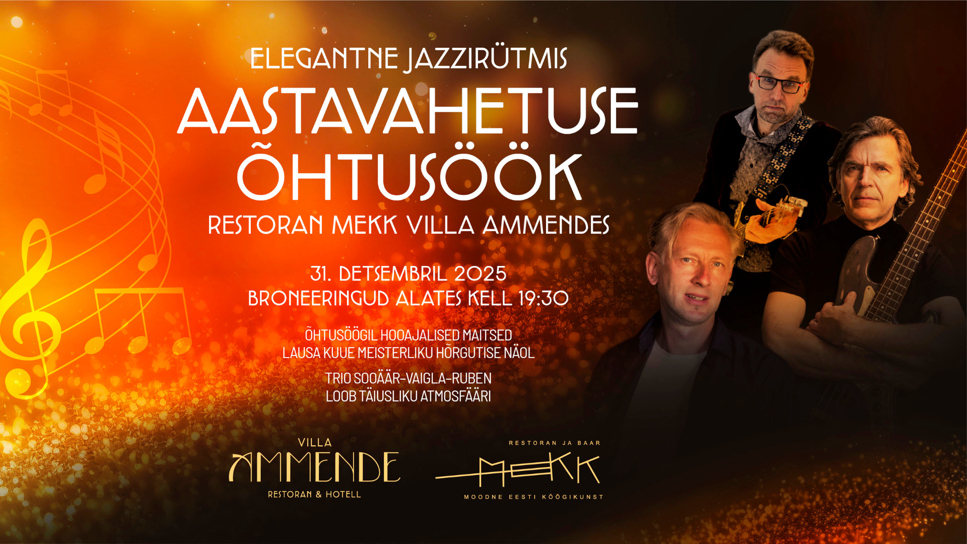 The festive ambience of Villa Ammende, the refined nuances of Modern Estonian Cuisine, and beloved jazz classics create a truly exquisite setting where the final moments of the year transform into an unforgettable celebration of elegance.