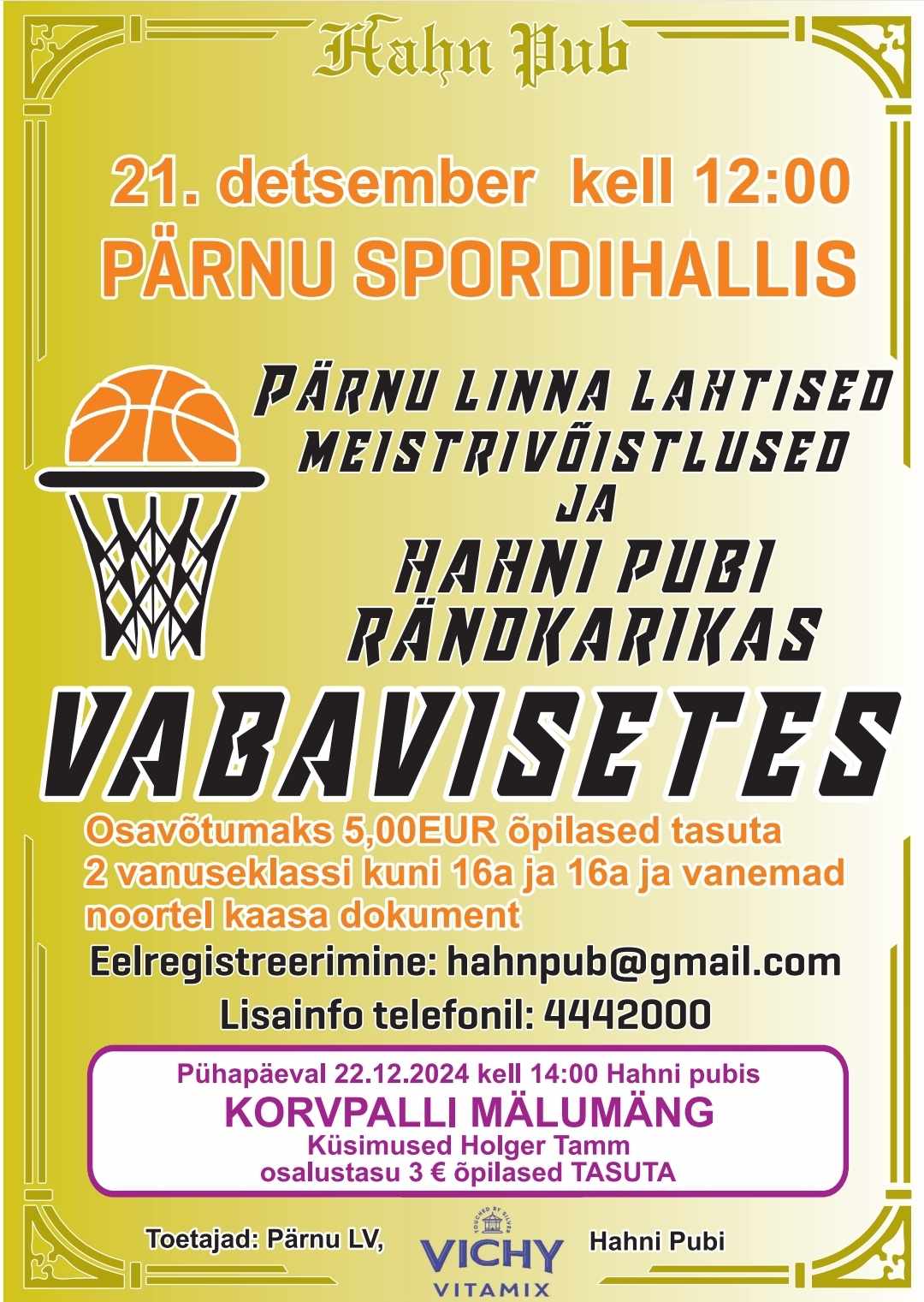 Eelregistreerimine hahnpub@gmail.com kuni 20.12.25 k.a.