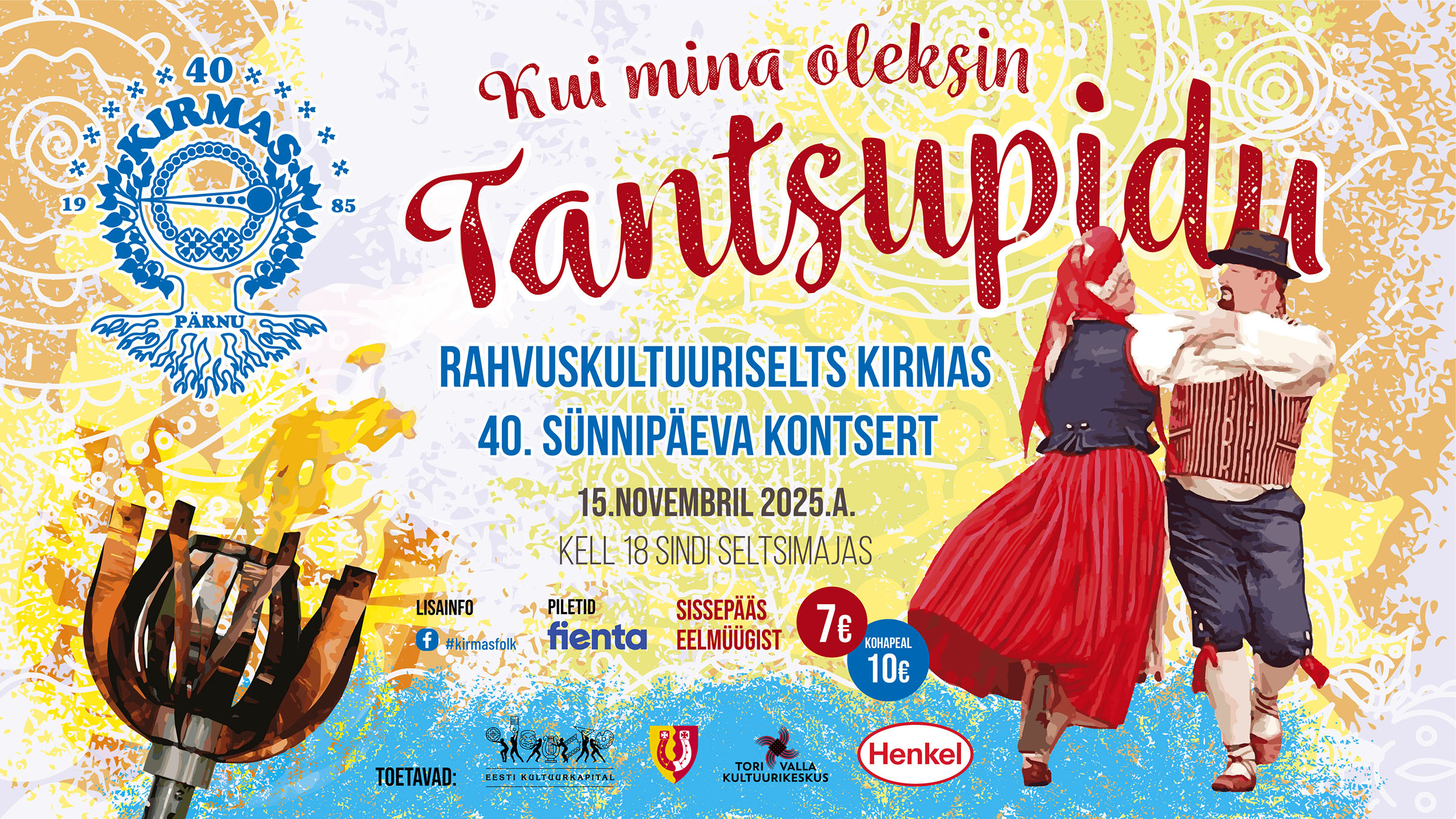 Rahvuskultuuriselts Kirmas on märkamatult saamas 40 aastaseks! Tule ja tähista seda tantsupeoaasta vääriliselt kontsertetendusega koos meie ja meie sõpradega Lätist, Häädemeestelt ja Saaremaalt.