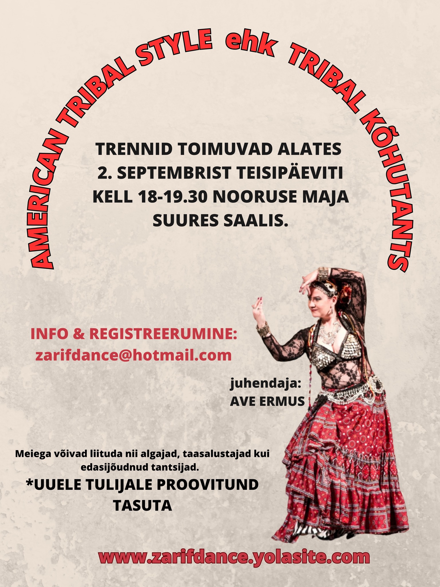 Vajalik eelnev registreerimine meiliaadressil: zarifdance@hotmail.com. Alustame 2. septembrist.