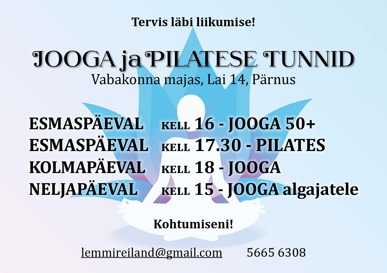 ESMASPÄEVAL kell 16- JOOGA 50+ rahulikumas võtmes