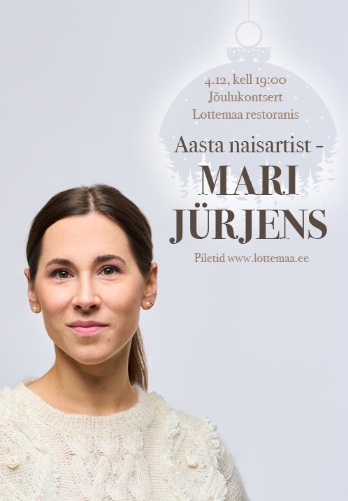 Neljapäeva, 4. detsembri õhtul astub Lottemaa restorani lavale AASTA NAISARTIST ja AASTA AUTORIALBUMI auhinna omanik, MARI JÜRJENS. Ta annab lummava ja jõuluhõngulise kontserdi, mis on ideaalne hetk veel enne pühade ja aastalõpu tormamist aeg maha võtta ja koos oma lähedastega mõnusalt aega veeta, võibolla isegi jõulupidu ära korraldada.