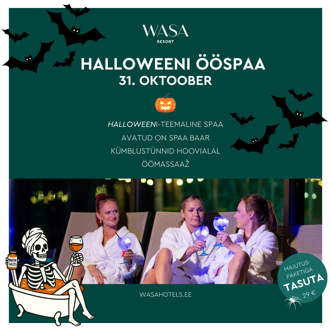 Reedel, 31. oktoobril muutub Wasa Resorti spaakeskus salapäraseks paigaks, kus Sind ootab halloweeni-teemaline spaakogemus – kusagil hiilivad ämblikud, siin-seal lendavad nahkhiired, janu kustutavad verised kokteilid ning kõhedat ööd soojendab hoovialal tünnisaun ja jahutab jäine kümblustünn.
