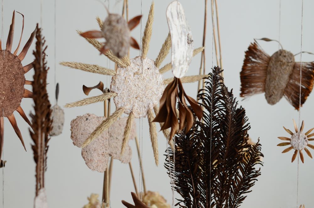2025. aasta näituselt leiab teoseid, mis on loodud tulekustutitest, vanades instrumentidest, plastikust, vokiratastest, loetud ajalehtedest, söögiriistadest, purunenud klaasist ja veel paljust muust.