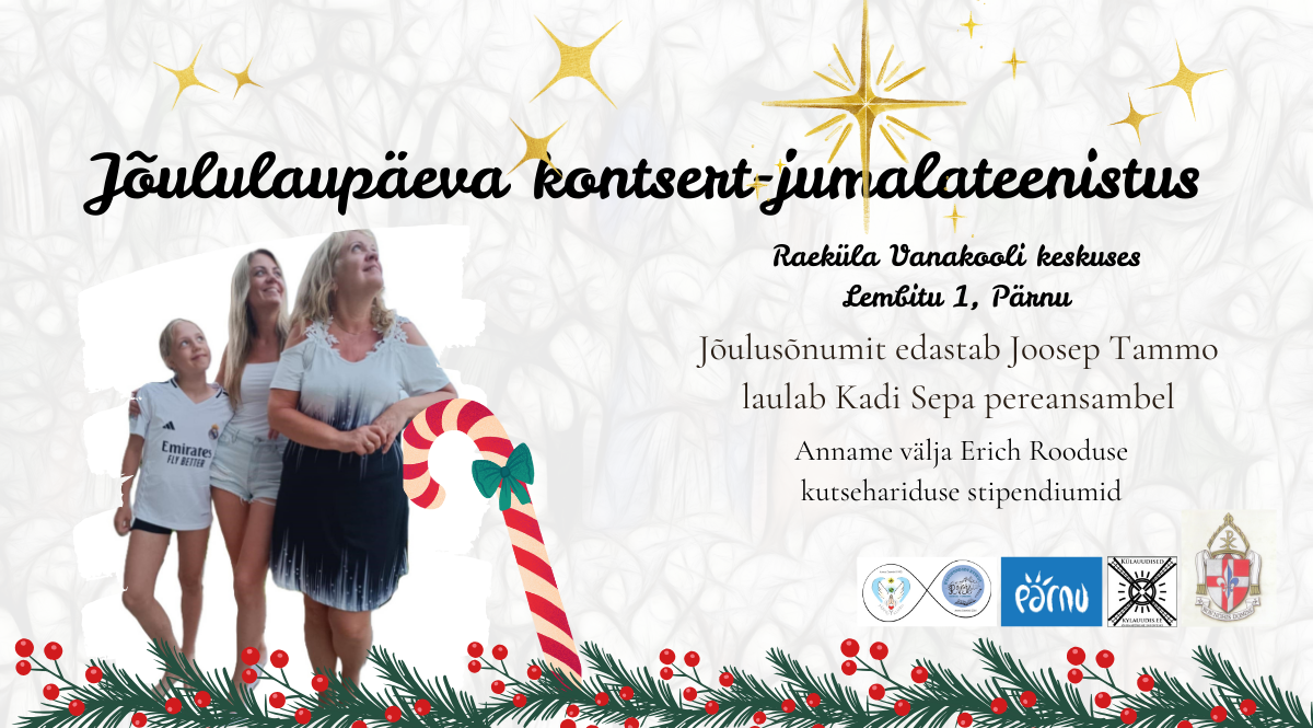 24. detsembril kell 12 toimuval jõululaupäeva kontsert-jumalateenistusel edastab jõulusõnumit Joosep Tammo, laulab Kadi Sepa pereansambel.