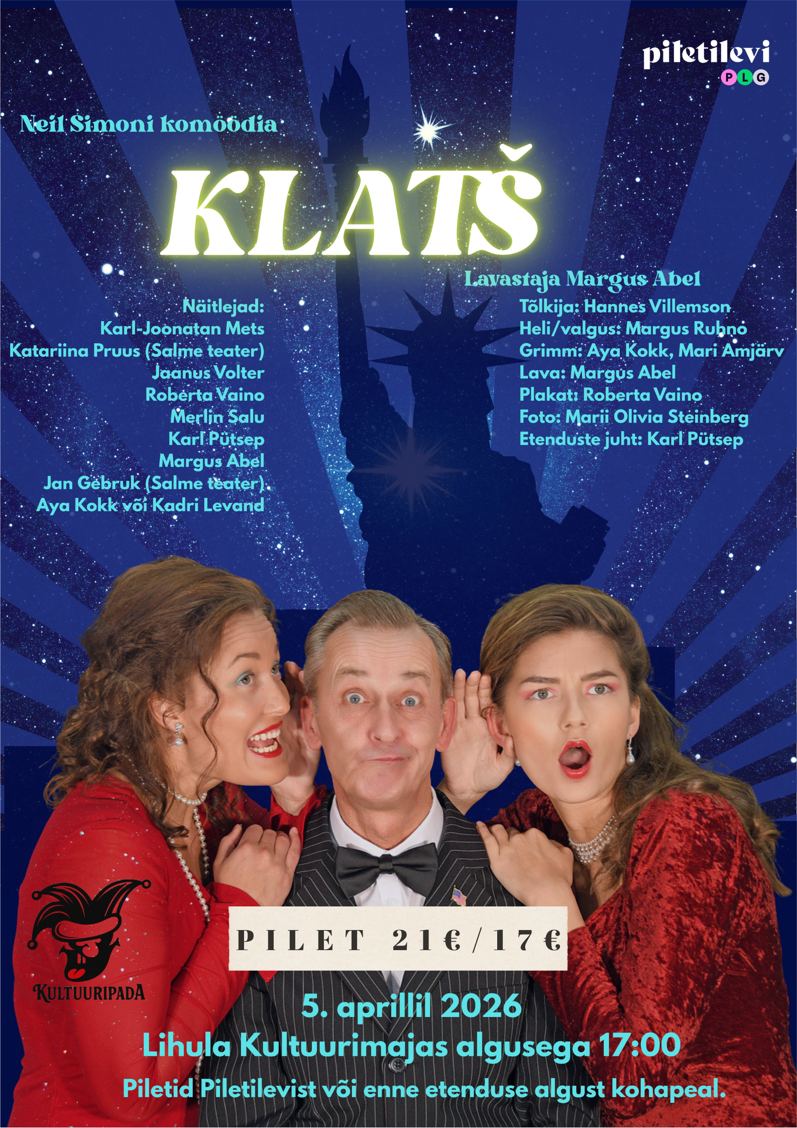 Tallinnas suure publikumenuga mängitud hittkomöödia nüüd komöödiagurmaane naerutamas üle Eesti! Lutsu huumoripreemia laureaadi Margus Abeli lavastatud USA komöödiaklassiku Neil Simoni aegumatu menukomöödia “Klatš” (“Rumors”, 1988) on tempokas lugu, mis täis absurdi- ja situatsioonikoomikat koos tabavate humoorikate dialoogidega.