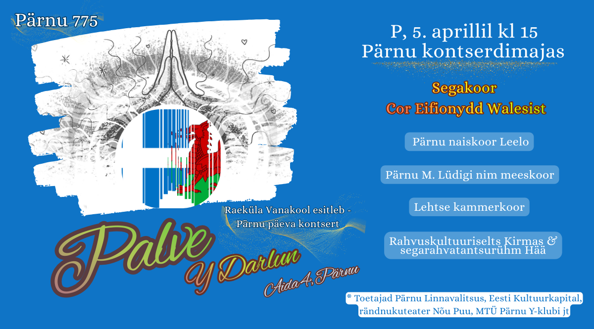 5. aprillil toimub Pärnu kontserdimajas kontsert “Palve – Y Darlun”. Sellel kontserdil üles astuvad koorid ja rahvatantsijad tähistavad sündmusega eeloleval kevadel saabuvat Pärnu linna 775. juubelit.