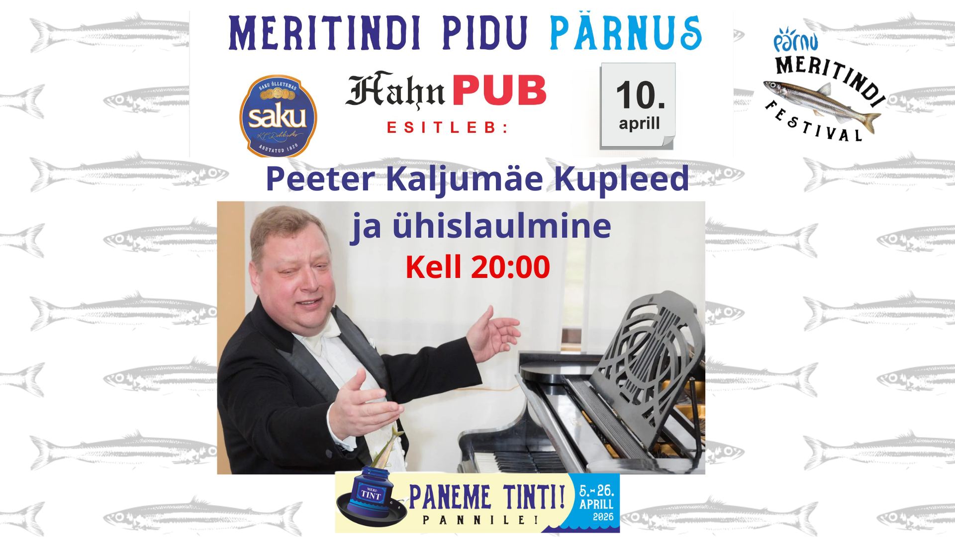 Pärnu Päeval 5. aprillil kell 11-16 festivali suur avapidu (tasuta) Martnesi väljakul ja 5.-26. aprillil meritindimenüüd Pärnu söögikohtades ja üle kogu Eesti!