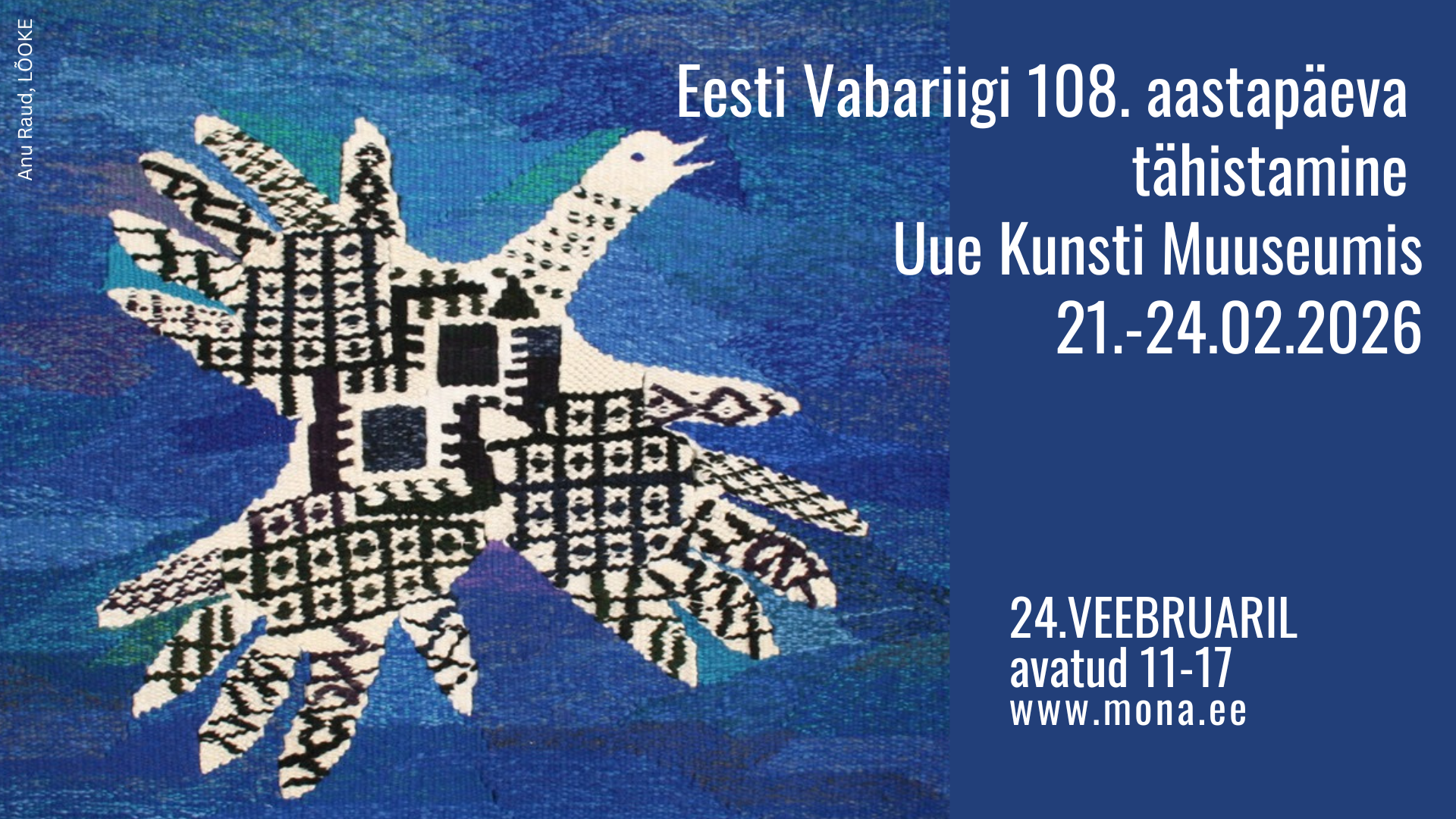 Eesti Vabariigi 108. aastapäeva tähistamine Uue Kunsti Muuseumis 21.-24.02.2026