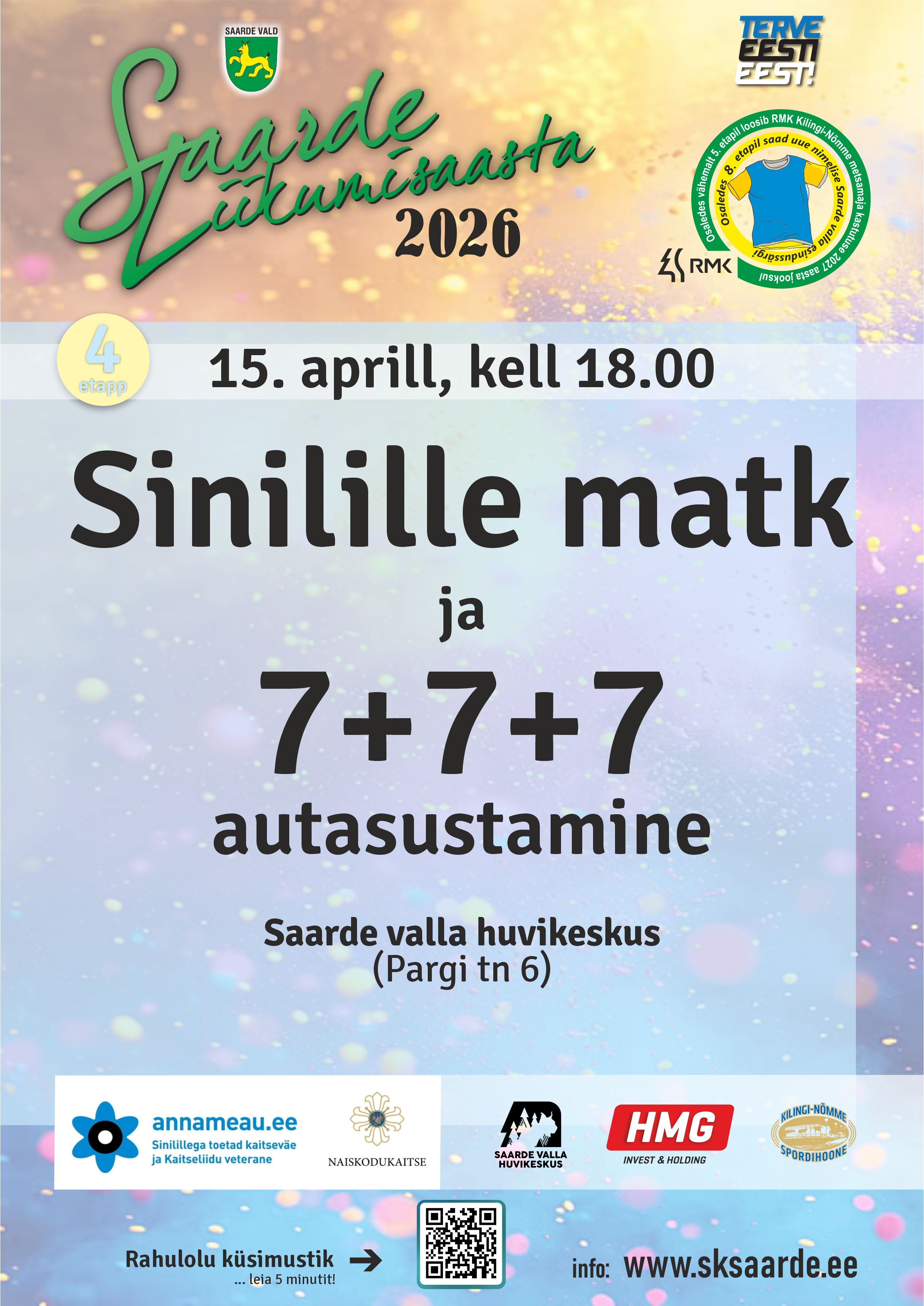 Saarde Sinilillematk on Saarde Liikumisaasta 2026 4. etapp. Kokku on sarjas 15 etappi. Osaledes vähemalt kaheksal, saad uue nimelise Saarde valla esindussärgi. Osaledes vähemalt viiel, loosime Ilvese peol RMK Kilingi-Nõmme Metsamaja kasutusõiguse 2027 aastal. Liikumisaasta koondtabel on leitav SIIT.