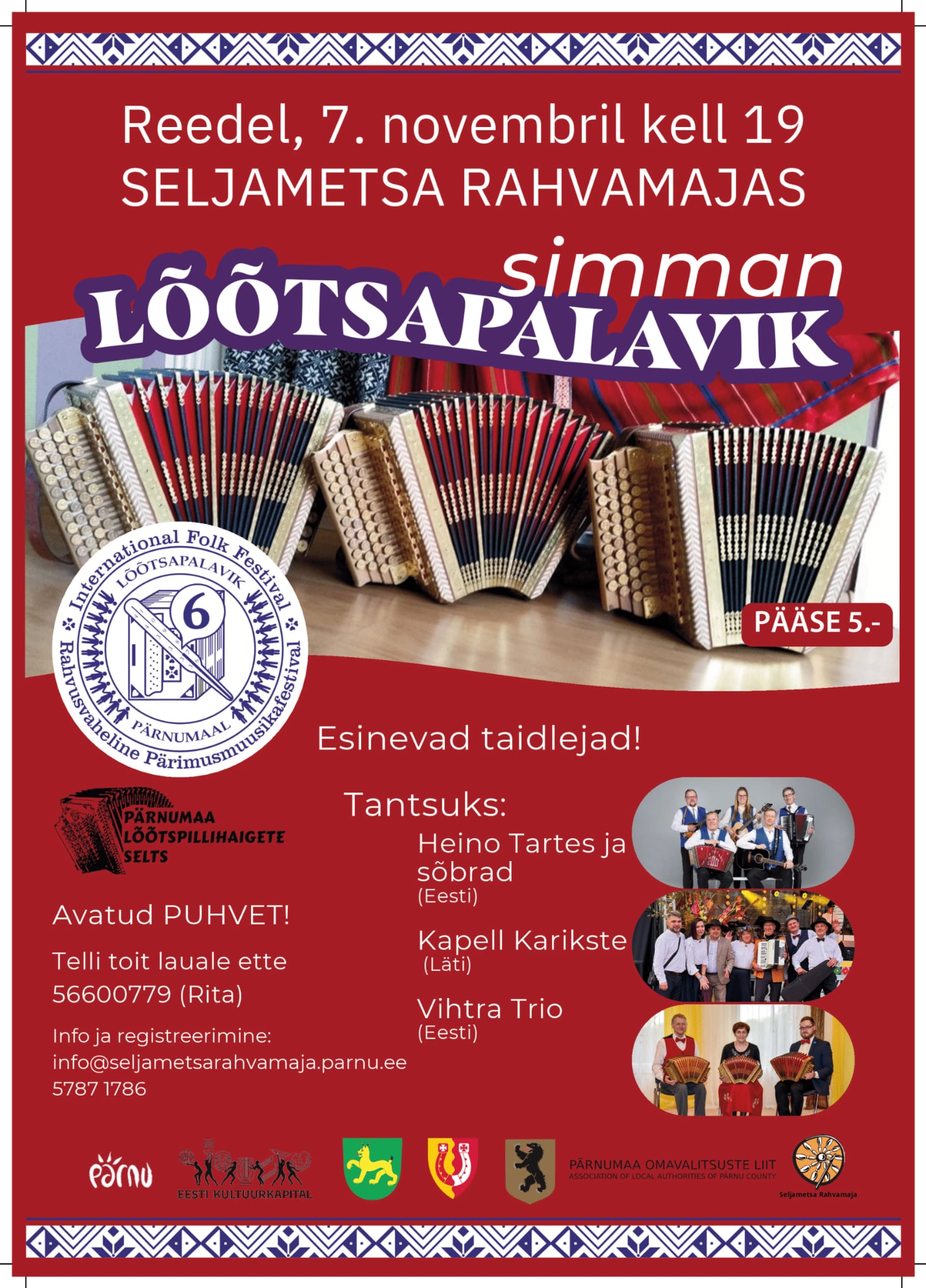 Rahvusvaheline Pärimusmuusikafestival "Lõõtsapalavik Pärnumaal" nr.6.